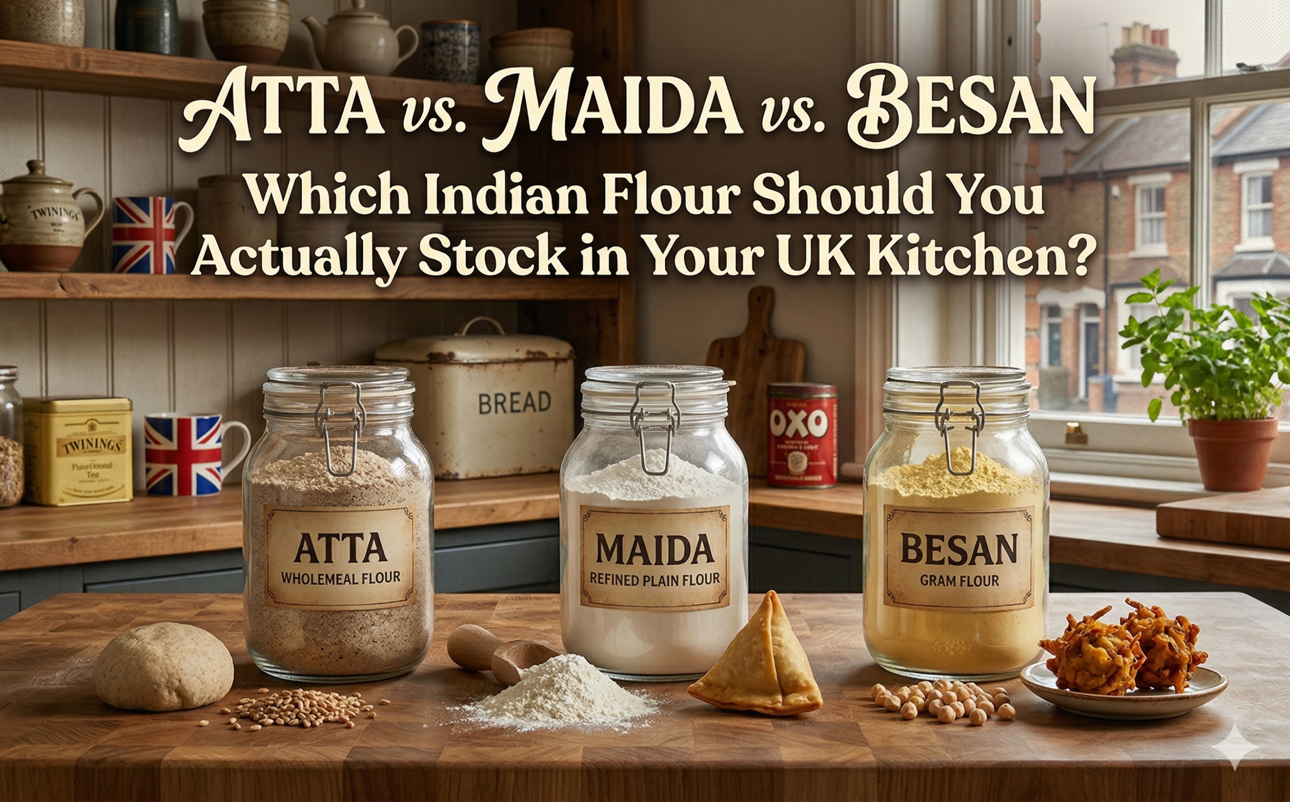But if you didn’t grow up around these flours — or you’re just starting to cook more Indian food in your UK kitchen — the whole thing can feel a bit confusing. They all look like flour. They all come in similar bags. So what’s actually the difference, and which ones do you genuinely need?