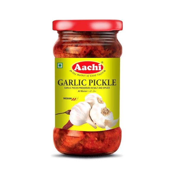 Spice up your meals with the bold and aromatic taste of Aachi Garlic Pickle. Made from carefully selected fresh garlic cloves, blended with a rich mix of traditional spices and oils, this pickle delivers a fiery flavour with a hint of tanginess.
