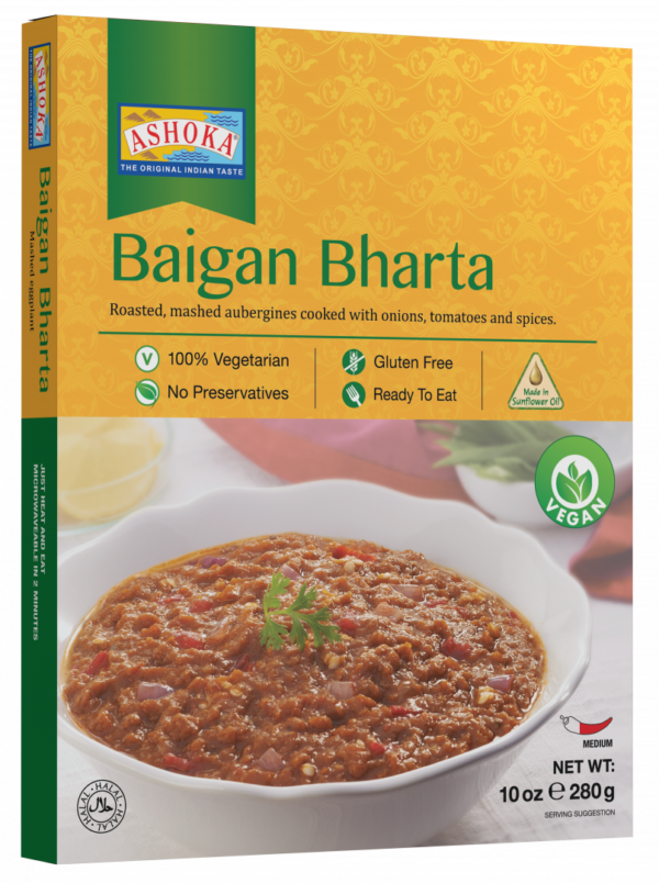 Ashoka Baingan Bharta is a classic North Indian delicacy made from fire-roasted eggplant, mashed and slow-cooked with onions, tomatoes, and a medley of aromatic spices. This ready-to-eat dish captures the rich, smoky flavour of traditional homemade bharta, offering authentic taste in minutes. Pair it with hot rotis, naan, or steamed rice for a wholesome and flavourful meal that’s quick, convenient, and satisfying.
